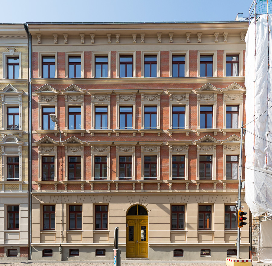 Dieses Gründerzeitgebäude, welches um 1910 errichtet wurde, wurde 2014/2015 umfassend und liebevoll saniert, den aktuellen Bedürfnissen angepasst. Neben der hochwertigen Ausstattung gehören dazu der Anbau neuer Balkone, Ausbau des Dachgeschosses bis hin zu Glasfaservernetzung bis in die Wohnungen, welches vielseitige technische Möglichkeiten bietet. Ein Fahrstuhl für ein bequemes erreichen der oberen Etagen wurde ebenfalls installiert.
