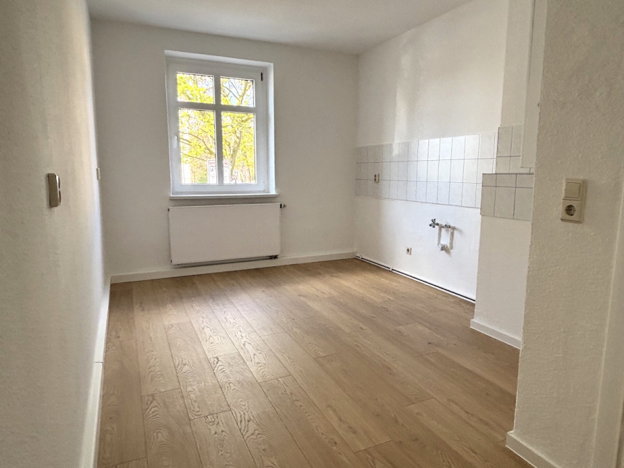 Die Wohnung befindet sich im EG und wurde frisch renoviert. In Flur, Küche und den beiden Zimmern wurde neu moderner Vinylboden verlegt. Zudem alle Wände sowie die Innentüren frisch gestrichen. Das Tageslichtbad verfügt über eine Wanne sowie einen Waschmaschinen-Anschluss.