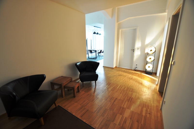 - geräumiges Wohnzimmer mit offener Küche inkl. Einbauküche sowie Zugang zur eigenen Terrasse mit Gartenanteil * 4 weitere großzügig geschnittene Zimmer * Badezimmer mit Wanne, bodengleicher Dusche, Handtuchheizkörper, Waschtisch mit großzügiger Holzablage, eingelassenem Spiegel und Spotlights * Gäste-WC + separater Hauswirtschaftsraum * Parkettfußboden in Flur und Zimmern (Eiche geölt) * Fußbodenheizung in gesamter Wohnung * CAT7-Datenverkabelung und Anschlüsse in jedem Zimmer * Wechselsprechanlage mit Kamerabildschirm * Kellerabteil * ...