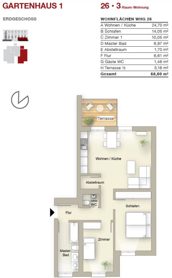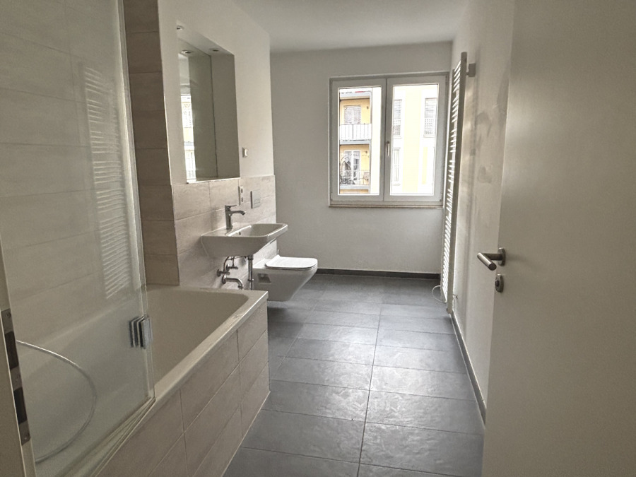 m Jahr 2022 wurde Neubau mit insgesamt 41 Wohneinheiten mit 2 bis 5 Zimmern und einer Wohnfläche zwischen ca. 43 - 95 m² fertiggestellt und erstmalig vermietet. Der Neubau unterteilt sich hierbei in ein Vorderhaus mit 23 sowie zwei Gartenhäuser mit jeweils 9 Wohnungen. Werden auch Sie Mieter und lassen Sie sich begeistern von funktionalen Grundrissen und einer geschmackvollen Ausstattung. Im Innenhof stehen 19 PKW-Stellplätze zur Verfügung und das Abstellen der Fahrräder ist innerhalb der Außenanlage möglich. Für die Versorgung mit Heizung und Warmwasser wurde eine effiziente Fernwärmeanlage gewählt.