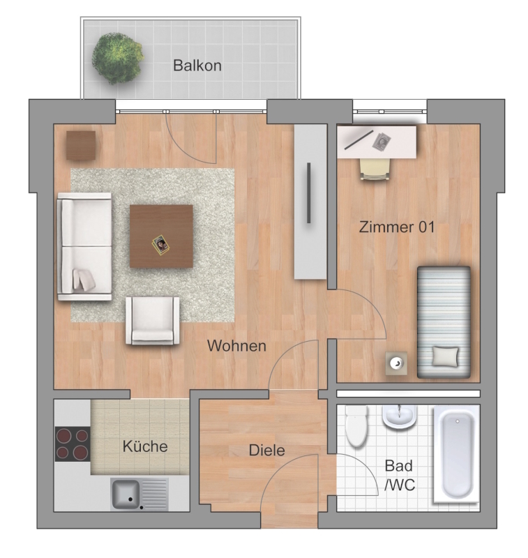 Die hier zur Vermietung stehende Single-Wohnung ist frisch renoviert und bietet Ihnen ein großzügiges Wohnzimmer mit Zugang zum geräumigen, sonnigen Balkon, auf welchem Sie sich Ihre eigene Wohlfühloase schaffen können. Die Küche ist zum Wohnzimmer hin teils offen. Das Schlafzimmer bietet ausreichend Platz für Bett und Schränke. Im Flur und den Zimmern wurde neuer moderner Laminatfußboden verlegt, die Küche und das Bad mit Wanne sind gefliest. Ein praktischer großer Einbauschrank im Flur, ein Kellerabteil sowie ein Stellplatz auf dem objekteigenen Parkplatz (optional zum anmieten für mtl. 20,- €) runden dieses attraktive Wohnungsangebot ab.