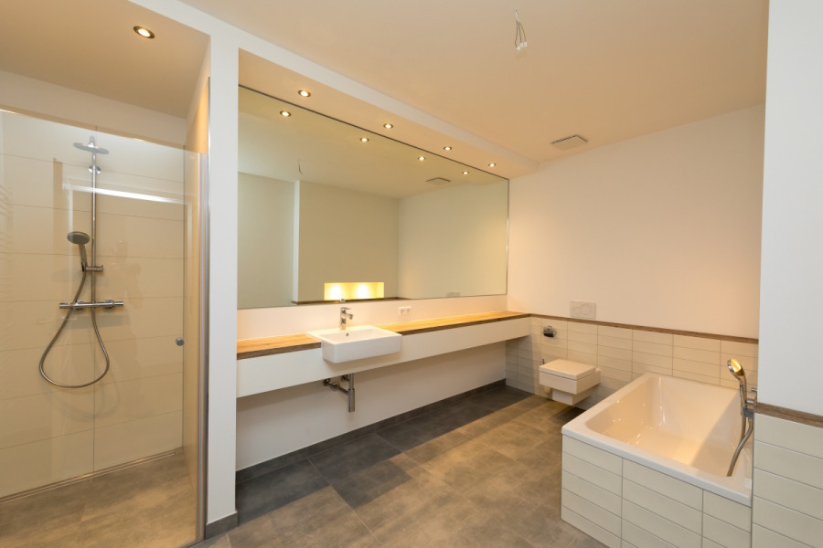 - Parkettfußboden in Flur und Zimmern (Eiche geölt) * offene Küche zum Wohn-Ess-Zimmer inkl. Einbauküche * großer, sonniger Balkon * Badezimmer mit Wanne, bodengleicher Dusche, Handtuchheizkörper, Waschtisch mit großzügiger Holzablage und eingelassenem Spiegel * Gäste-WC + separater Hauswirtschaftsraum * Fußbodenheizung in gesamter Wohnung * Spotlights in Bad + Gäste-WC * CAT7-Datenverkabelung * Video-Wechselsprechanlage * ...
