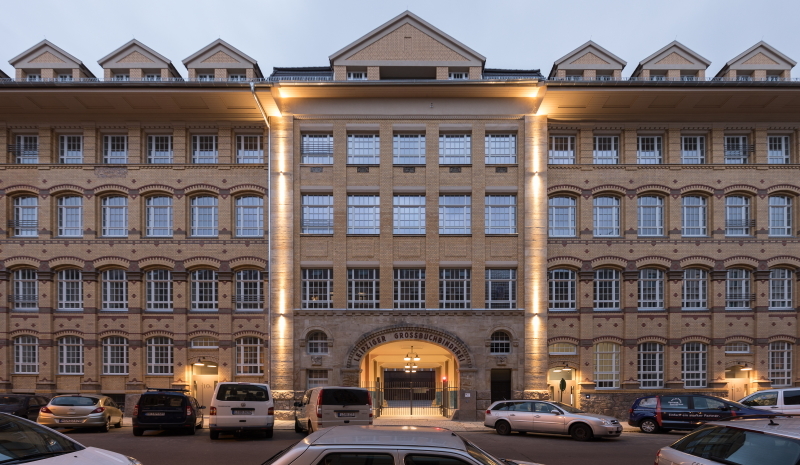 Das im Jahre 1913 erbaute und unter Denkmalschutz stehende Ensemble aus ehemals Produktions- und Direktionsbereich überzeugt nach seiner umfangreichen Sanierung von 2016 - 2018 durch eine charmante Verbindung stilvoller Altbauelemente mit modernstem Wohnkomfort! Hinter historischer Fassade der ehemaligen Großbuchbinderei entstanden 76 modern ausgestattete Wohneinheiten zwischen ca. 64 und 162 m² Wohnfläche, welche nicht nur durch ihre gut durchdachten Grundrisse, sondern auch durch ihre elegante Ausstattung für sich sprechen. Eindrucksvolle Deckenhöhen und bodentiefe Fenster verleihen dem Großteil der Wohnungen fühlbaren Loftcharakter. Neben Massivholzparkettboden, Fußbodenheizung, Designerbädern mit Wanne sowie teilweise mit bodengleichen Duschen, hochwertiger Fliesen- und Keramikausstattung sind die Einheiten größtenteils mit Balkonen bzw. Terrassen in Westausrichtung ausgestattet. Die Wohnungen im Erdgeschoss erhielten zusätzlich einen Terrasse mit eigenem Gartenanteil. Alle Wohnungen ab dem 1. OG erreicht man bequem über die beiden neu eingebauten Aufzüge. Im objekteigenen Parkhaus, auf dessen Dach eine schöne Gemeinschaftsfläche für die Mieter des Buchwerkes geschaffen wurde, steht für jede Einheit ein Stellplatz zur Verfügung. Für die Versorgung mit Heizung und Warmwasser wurde eine effiziente Fernwärmeanlage in Parallel-Kombination mit einer Luft/Wasserwärmepumpe gewählt.