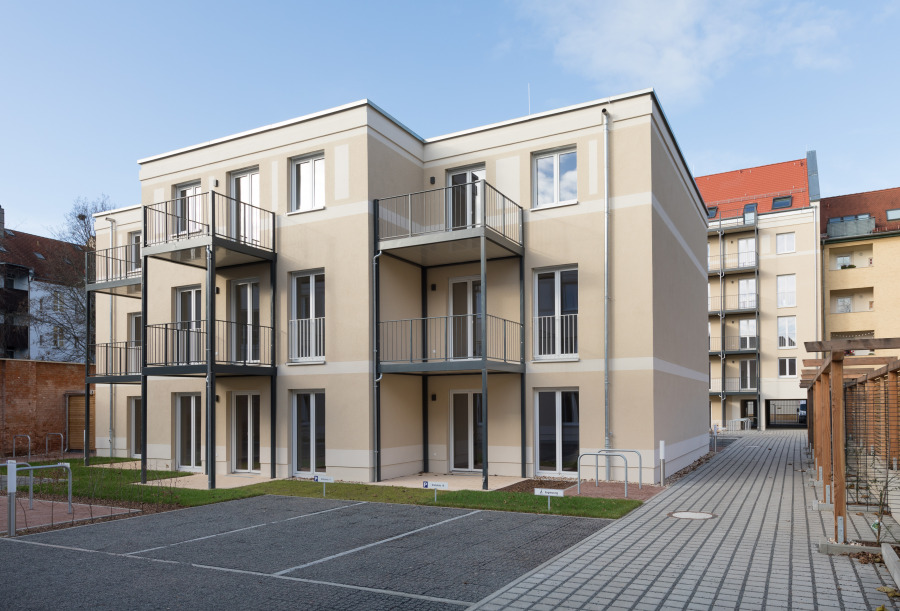 Im Jahr 2022 wurde Neubau mit insgesamt 41 Wohneinheiten mit 2 bis 5 Zimmern und einer Wohnfläche zwischen ca. 43 - 95 m² fertiggestellt und erstmalig vermietet. Der Neubau unterteilt sich hierbei in ein Vorderhaus mit 23 sowie zwei Gartenhäuser mit jeweils 9 Wohnungen. Werden auch Sie Mieter und lassen Sie sich begeistern von funktionalen Grundrissen und einer geschmackvollen Ausstattung. Im Innenhof stehen 19 PKW-Stellplätze zur Verfügung und das Abstellen der Fahrräder ist innerhalb der Außenanlage möglich. Für die Versorgung mit Heizung und Warmwasser wurde eine effiziente Fernwärmeanlage gewählt.
