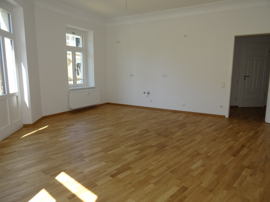 - großzügiges Wohnzimmer mit offener Küche * modernes Bad mit ebenerdiger Dusche und Waschmaschinenanschluss * geräumige Küche mit Zugang zum Balkon * Echtholzparkett in Flur und den Zimmern * Glattputzwände * barrierearmer Zugang durch Aufzug * Abstellraum auf halber Treppe * Kellerabteil